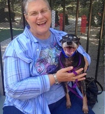 Муж Эндрюс скончался в январе прошлого года, а ее собака Лола умерла в феврале. После того как ее внучки сказали ей, чтобы она не чувствовала себя одинокой - ей нужна собака, женщина решила последовать их совету. Эндрюс направилась в приют на улице Фейс-стрит и попросил местную администрацию показать ей «самого долгоживущего в приюте постояльца,которого долго никто не забирал». Этой собакой был Джейк, смешанная порода с терминальным раком с проблемами с кожей и зубами. На его питомнике была табличка говорящая: Привет, я Джейк, и я здесь ненадолго! - сказала Эндрюс. Мне 12 лет, я не маленький, но я надеюсь, что кто-то скоро усыновит меня в их прекрасную семью. Я мягкий и ласковый парень, и я буду любить вас так,как только смогу. Я сразу поняла, что он боец, и что он хотел обрести дом, которого у него никогда не было, - сказала Эндрюс, и она довольно быстро решила забрать его к себе. С тех пор Джейк живет у Эндрюс. Особенно любимое его занятие - это накрывать себя наволочкой и ф