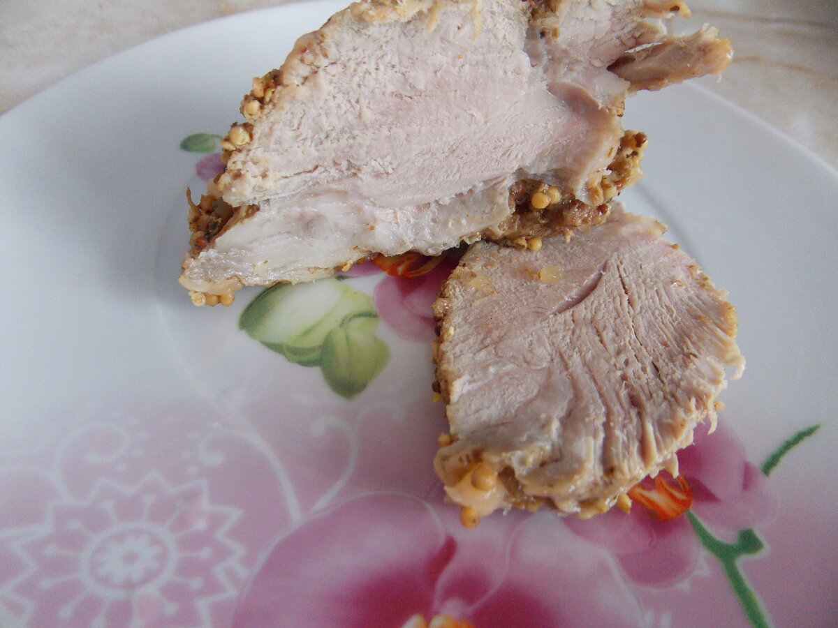 Предлагаю приготовить буженину.Очень вкусное мясо, гораздо лучше и полезнее колбасы. Побалуйте своих близких. Мясо можно есть как в горячем так и в холодном виде. Я оставляю его на ночь в холодильнике, а затем нарезаю пластиками и на хлеб - вот и бутерброд. Делать такое мясо не составит большого труда. Для этого необходимо взять небольшой кусок свинины (вырезка) примерно на полкило весом. Я делаю это с вечера, а к ужину следующего дня мясо готово. Приступим: в кастрюлю нальем примерно 1 л воды, добавил 1 ст.л соли и уксус по вкусу 1-2 ст.л. В этот рассол положить кусок мяса на ночь. Утром достать из рассола мясо, обсушить его бумажными полотенцами и намазать смесью из специй, которые вы любите, добавив к ним растительное масло. Я использую разные варианты - это может быть и готовая аджика с толченым чесноком, и набор пряностей различных:кориандр, острый перец,паприка, хмели-сунели, можно добавить французскую горчицу. В общем на любителя. Обмазанное мясо специями упаковать в пакет или