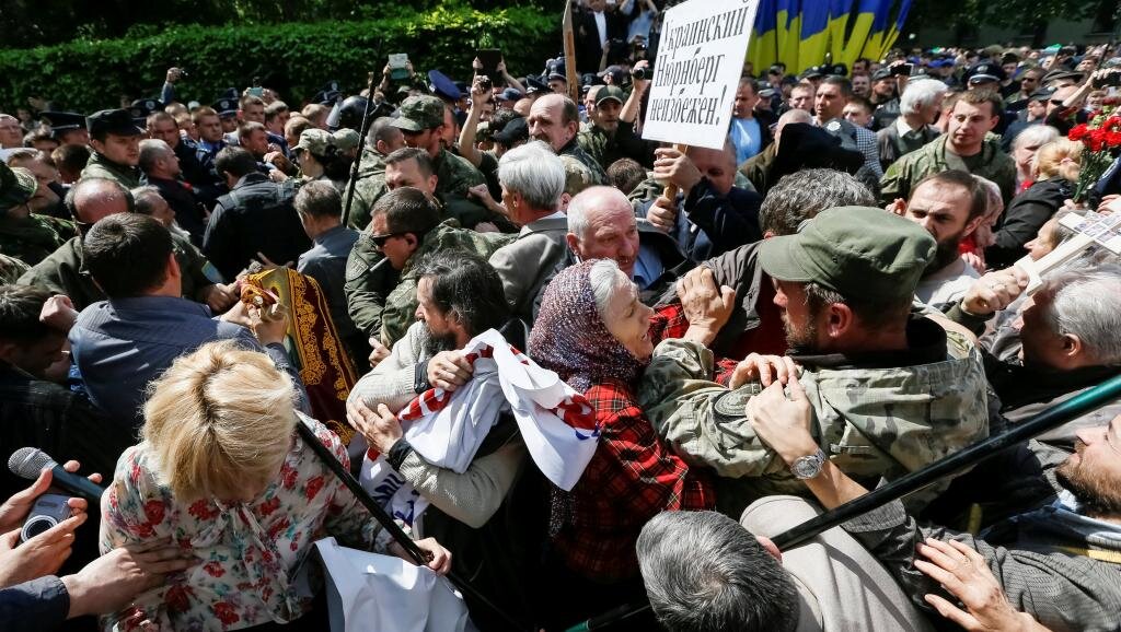 Потасовки, драки, задержания за георгиевские ленточки, за советскую символику, например, за надпись «СССР» или наклейку с флагом Советского Союза на автомобиле. Власть и радикалы на Украине используют День Победы, чтобы ещё больше оттолкнуть страну от России, от общей истории. И непонятно, кто больше старается: власть или радикалы-националисты. Или это одно и то же, и они общее дело делают?