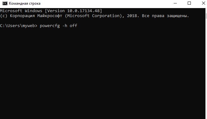 В старых версиях Windows вы можете открыть свой диск C, найти файл гибернации с именем hiberfil.sys. В Windows 10 файл был скрыт, так что вы можете найти его даже с учетной записью администратора. Несмотря на это, вы все равно можете удалить его так же, как в старых версиях Windows. Следует отметить, что если вы часто ставите свою систему в спящий режим, вы не должны удалять этот файл. Вам это нужно, чтобы возобновить работу вашей системы. Если вы не используете режим гибернации и вместо этого предпочитаете выключать свою систему в конце дня вручную, вы можете удалить этот файл, который занимает достаточно место на жестком диске. Для удаления файла спящего режима вам понадобятся права администратора. Откройте командную строку с правами администратора, вставьте следующее и нажмите «Ввод». powercfg -h off Перезагрузите свою систему, и файл спящего режима в Windows 10 исчезнет.
