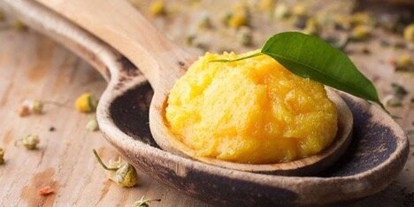 Это один из самых древних продуктов, дошедших в неизменном виде до наших дней. В Древней Индии его почитали как минимум за два тысячелетия до Рождества Христова. Используется как для лечения, так и для употребления в еду. По принципам Аюрведы, если маслу много лет, в нем лучше выражены лечебные свойства. Очень ценным является масло гхи, которому свыше 10 лет. Гхи отличается от обычного топленого коровьего (сливочного) масла примерно так же, как крутон отличается от простой гренки. Вроде бы одно и то же, но в исполнении знаменитого шеф-повара в дорогом ресторане высокой кухни поджаренный кусок хлеба выглядит по-особому и, соответственно, стоит на порядок дороже. Масло гхи применяют как основу для аюрведического массажа, растирания и продукт питания. Гхи повышает аппетит, увеличивает вкус еды. Способствует пищеварению, за счёт активного выделения желудочного сока. Повышает интеллект, понимание и память. Гхи содействует облегчению хронической лихорадки, анемии, нарушении крови, хорошее ан