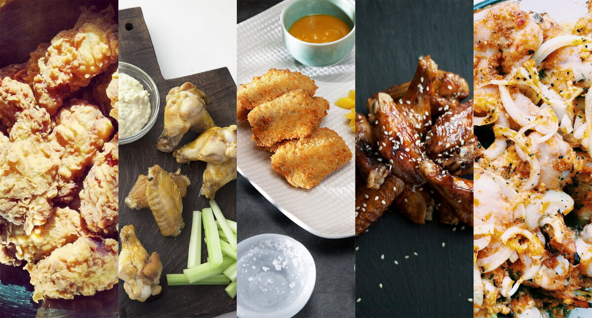 В ПРЯНЫХ МАРИНАДАХ И СОУСАХ, ЖАРЕНЫЕ И ЗАПЕЧЕННЫЕ С наступлением тепла все отправляются на дачи и пикники, и куриные крылья становятся в некотором смысле важнейшим сезонным продуктом. Они вкусны, как бы с ними ни обращались, они быстро и легко готовятся даже в лесу, они недороги, и ими легко накормить большую компанию, и еще их можно есть руками — и даже нужно. Мы выбрали одиннадцать рецептов, в которых крылья украшены маринадами, пропитаны соусами всех мастей и окутаны панировкой, — от классических американских крылышек буффало до куриных крыльев в апельсиновом маринаде, лимонном сиропе, чесночном соусе или в медовой глазури. Главное — готовить сразу много! Куриные крылья в темном соусе Маринованные крылья сначала обжариваются на кипящем масле на сковороде, а после варятся в крепком курином бульоне с маринадом в воке. Куриные крылья с соленым манго Этим рецептом с нами поделился Дмитрий Погорелов, когда он был шефом московского ресторана «Юми». Крылышки баффало Классика американск