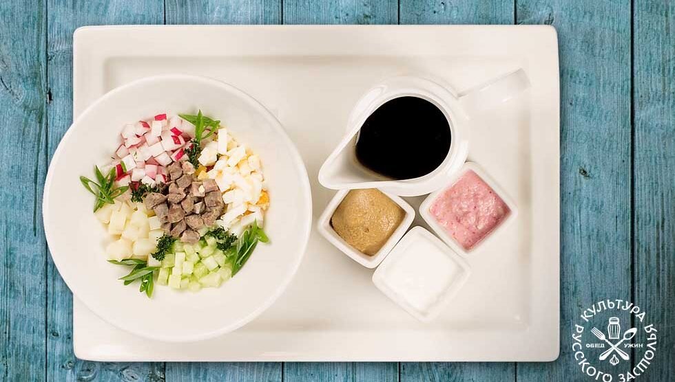 Окрошка самая традиционная, потому что нет ничего лучше классики Соотношение продуктов, кваса, хрена, горчицы и соли в окрошке, даже если это традиционная окрошка (потому что нет ничего лучше классики), для каждого человека индивидуальное. Кто-то любит погуще, кто-то — побольше кваса, кому-то очень остро, кому-то наоборот — пресно. Поэтому делюсь вариантом подачи окрошки от шеф-повара сети ресторанов «Брудер» Евгения Малютина — сухую составляющую положить в тарелку, а квас и все специи подать отдельно, тогда каждый сможет намешать в пропорциях, которые больше нравятся. Окрошка самая традиционная Шеф-повар - Евгений Малютин