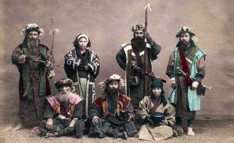 Когда предки современных японцев прибыли на их новую Родину, их встретили люди, которые пришли раньше. Айны. Сегодня численность айнов в Японии составляет 25000 человек, но многие считают, что их намного больше. Многие айны из-за многовековой дискриминации скрывали своё происхождение. Хотя айны смогли сохранить свой язык, веру, культуру, только в 2008 году японские власти признали существования айнов как коренного народа. Язык айнов не похож не на один известный язык, религиозные и культурные традиции не имеют ничего общего с ближайшими соседями. У айнов толстые, кучерявые волосы, светлого или рыжеватого оттенка, а кожа бледнее, чем у японцев. Из-за их отличий от японцев, айны, подвергаются ущемлению и дискриминации. Предки современных японцев быстро захватили остров, заставляя айнов уходить всё дальше и дальше на север, пока они полностью не были оттеснены на остров Хоккайдо. Айнов можно сравнить с индейцами, которых истребляли европейцы, прибывшие в Америку. В 18 веке Император Мэйд