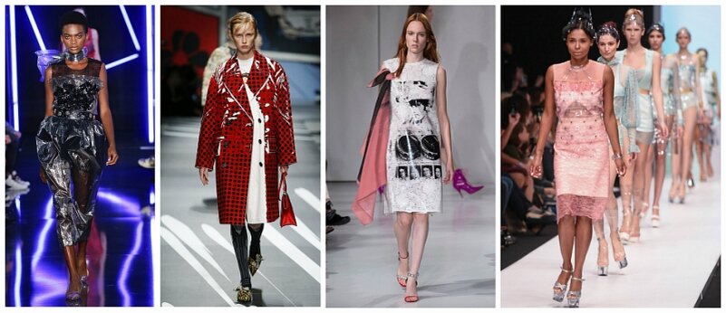 Футуристическая тема, начатая в прошлом году, продолжится и в следующем, только теперь опережающий время образ состоит не только из черного и белого «металлика», но и пластиково-пленочной фактуры. Такие элементы использовали в своих показах такие мэтры моды, как Chanel, Prada, Valentino, Calvin Klein, а также Emanuel Ungaro, Balmain и российский дизайнер Юлия Косяк. Они представили разнообразные наряды классического кроя из шерсти, твида, разбавив солидные образы полиэтиленовыми плащами, ботфортами и верхними слоями многослойных платьев. И хотя применить эти тренды 2018 в повседневной жизни, скорее всего, не получится, чтобы не выглядеть вычурно, но стоит задуматься о прозрачной накидке или аксессуарах в случае вечеринки.