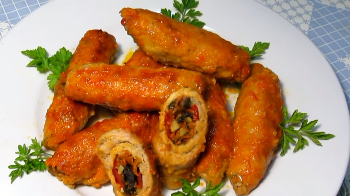 Ингредиенты: Мясо(свинина) - 500 гр. Шампиньоны - 250 гр. Помидоры в собственном соку - 300 мл. Сметана - 3 стол.ложки, Морковь - 1 шт. Сладкий перец - 2 шт. Лук - 1 шт. Чеснок - 2 зубчика, Петрушка, соль, перец - по вкусу, Мука, Масло растительное Видео взято с канала youtube.com Valentina24777. Готовим Вкусно.