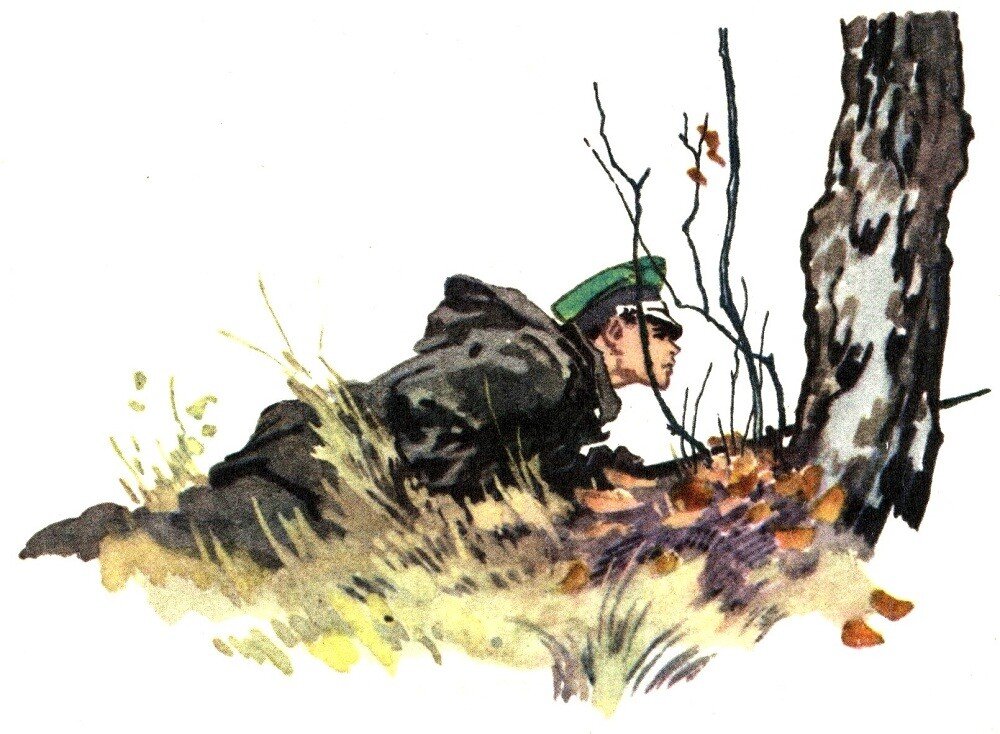 Во время скрытных действий разведчика в тех местах, где он может быть обнаружен, а также при передвижениях и преодолении препятствий разведчик должен: