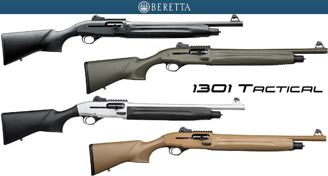 Недавно Beretta обновила линейку уже существующих ружей серии 1301, предназначенных для тактической эксплуатации и самообороны. Были добавлены дополнительные расцветки, варианты исполнения и оснащение. Серия предшественников была с фиксированным чоковым дульным сужением, теперь же в обновлении есть возможность их смены (OptimaBore HP). Будет ли это сильное сужение для кучной осыпи дроби, дульный тормоз для компенсации отдачи/подброса оружия или насадка для вышибания петель дверей - решать пользователю. Подствольный трубчатый магазин можно расширить в с пяти до семи зарядов, в итоге получая 7+1 патронов в оружии без учета дополнительных держаталей, которые можно установить на ружье. " Прямо из коробки на оружие уже установлен увеличенный рычаг взвода затвора, широкая клавиша затворной задержки и большая сквозная кнопка предохранителя. Элементы управления будут удобны для оперирования в любых условиях и экипировке. Мощное текстурирование насечек обеспечит надежный хват даже в рукавицах.