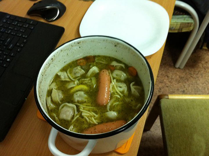 Отличный общажный суп с… целыми сосисками. Питательно и воспитательно. Тю, а где еще сушить носки-трусы, если не здесь? А, ну да. Девочкам можно еще и здесь Какие экзамены? Играем, елы-палы! Что задавали на завтра, ты не помнишь? Подруга, а это случайно не моя бритва? Скоро Новый Год! Конец сессии А розетка выдержит, парни? Не дрейфь, врубай все! И такое тоже бывает!