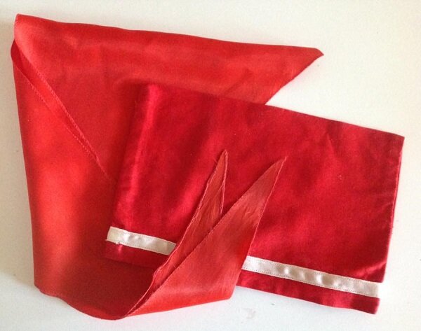 Это мой - самый настоящий мой - пионерский галстук. Точнее самый последний из всех галстуков. Время от времени у них зажевывались кончики, они старели, ветшали и приходилось покупать новые. Этот последний сохранился в приличном виде.