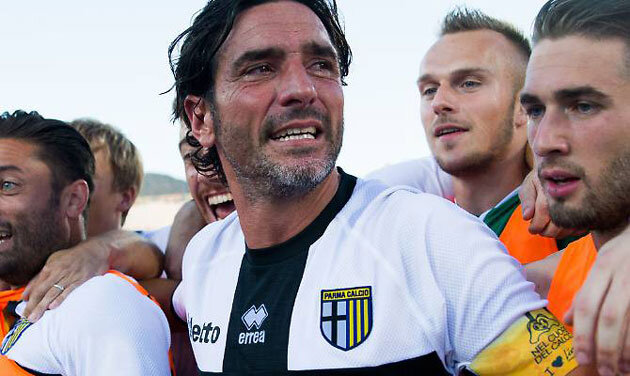 Алессандро Лукарелли 40 летний капитан "Пармы" вчера праздновал со своей командой повышение в Серию А.