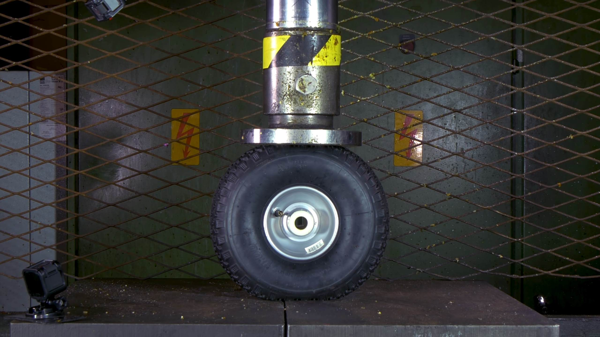 Чего только мы уже не помещали под пресс. Но сегодня всё равно время очередного интересного эксперимента. Под гидравлику отпарвится сильно накаченное колесо. Наверное ни у кого не возникает сомнений, что пресс справится с такой задачей, ибо и более твёрдые и сложные вещи давили. Но сегодняшний опыт больше на зрелищность. Мы хотим увидеть, как это будет происходить. Если колесо лопнет, то в какой именно момент и как именно. Какой "блинчик" получится из этого союза металла и резины. Специально для этого съёмка ведётся с разных углов несколькими камерами, некоторые из которых пишут в замедленном режиме. Чтобы потом можно было медленно и детально просмотреть весь процесс разрушения и сдавливания объекта. А кроме того мы раздавим ещё несколько штук: Понравилось? Тогда мы ждём ваших лайков нашей Дзен-публикации ;) И готовим для вас новые подборки.