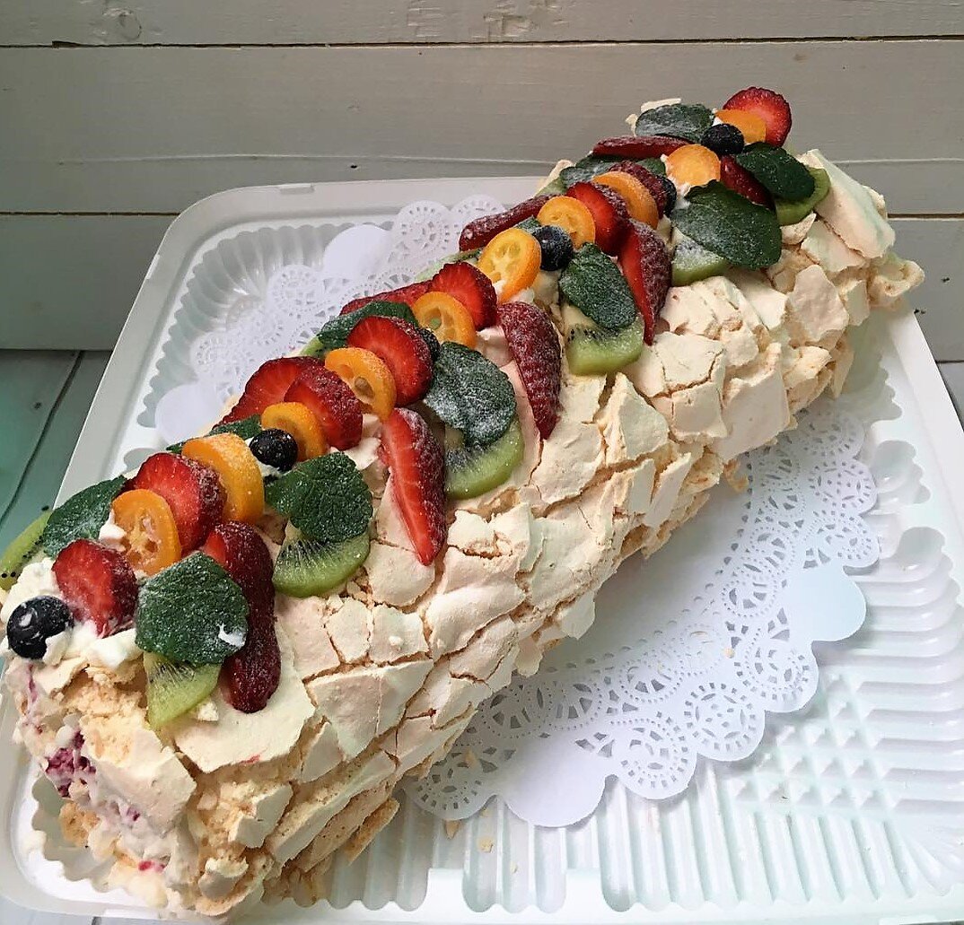 Меренговый рулет со свежими ягодами Тонкая мягкая меренга, взбитые сливки с клубникой и малиной - это бомба! Ингредиенты:
