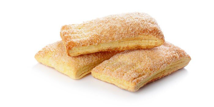 - Вытаскиваем тесто и раскатываем его на тонкий пласт. Нарезаем на кубики, промазываем яйцом и присыпаем сахаром.
