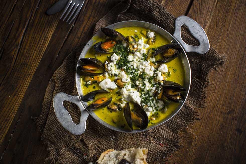 Мидья саганаки Ресторан ΜΟΛΩΝ ΛΑΒΕ