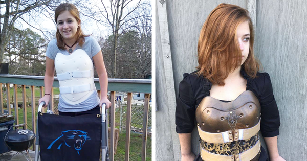Не так давно Мэдди попала в автокатастрофу и сломала грудные позвонки, поэтому теперь она вынуждена носить ортопедический корсет. К счастью, подруга семьи и участница театральной группы Сара помогла девушке превратить ее корсет в оригинальную стимпанк-броню. "Моей дочери не нравился корсет, который она должна была носить после операции, поэтому подруга помогла ей придать корсету стимпанк вид", - рассказала Линда, мама девушки. "Мы попали в ужасную аварию, у нее были переломаны грудные позвонки" Стимпанк-броня приковывает внимание, но теперь люди не просто глазеют, им интересна история девушки .
