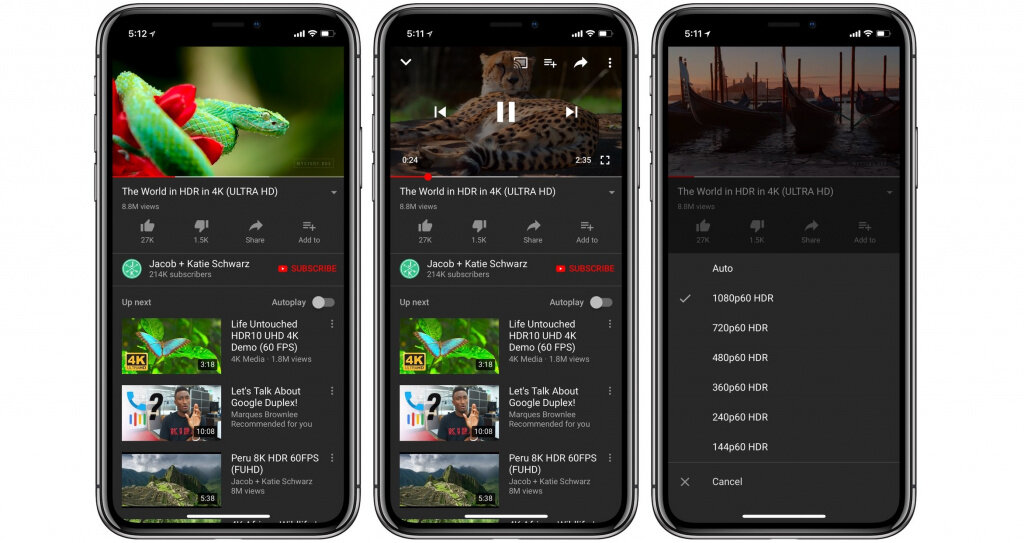 Ставь лайк (если материал понравился)! Делись с друзьями, подписывайся на наш канал Copyright © serty.ru На днях началась раздача обновления приложения для популярного видеохостинга YouTube. Главным преимуществом обновления стала поддержка формата HDR, хотя далеко не все модели мобильных устройств смогут его получить. Например, «яблочный» планшет iPad Pro, вероятнее всего, останется без нововведения, несмотря на то, что он поддерживает технологию HDR, которая обеспечивает более яркий и контрастный диапазон изображения. Проверить доступность режима на своем устройстве после обновления совсем несложно, достаточно просто просмотреть меню выбора качества. Примечательно, что пользователям Android такая возможность была предоставлена еще в ноябре 2016 года, в то время как владельцы устройств, работающих на платформе iOS, только сейчас смогут опробовать её, с той лишь разницей, что далеко не все современные модели Apple с HDR поддержат этот режим на YouTube.