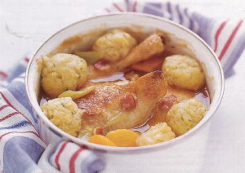 Клецки на жиру издревна добавлялись в гуляши, чтобы их надольше хватило. Они особенно популярны в графстве Восточная Англия, и даже существовало выражение "норфолкская клецка", которым называли "пышек". На 4 порции: