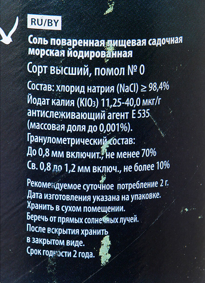 Давайте разберемся, как понять, чем различается одна соль от другой, на что обратить внимание при покупке и какую соль в итоге выбрать. Наш верный помощник - этикетка, давайте посмотрим на нее и последовательно разберем, что именно на ней написано. Разбирать будем при помощи ГОСТа, в РФ это "ГОСТ Р 51574-2000 Соль поваренная пищевая." "Соль поваренная пищевая" Это означает пищевую соль. "Поваренная" - от слова "повар", т.е. та соль, которую используют повара. "Садочная морская" Это способ производства. Наш ГОСТ выделяет 4 способа производства: каменная - добывается из соляных залежей в шахтах или карьерах. Нарубили, перемололи и упаковали. Крупные месторождения каменной соли - Соль-Илецк, Тыреть. садочная - та, которую люди осаждают из соленой воды в специальных бассейнах. Как правило это морская соль, но встречается и родниковая. самосадочная - та, что сама осела естественным образом на дне водоема. Чаще всего это озерная соль. Самое известное соляное озеро в России - озеро Баскунч