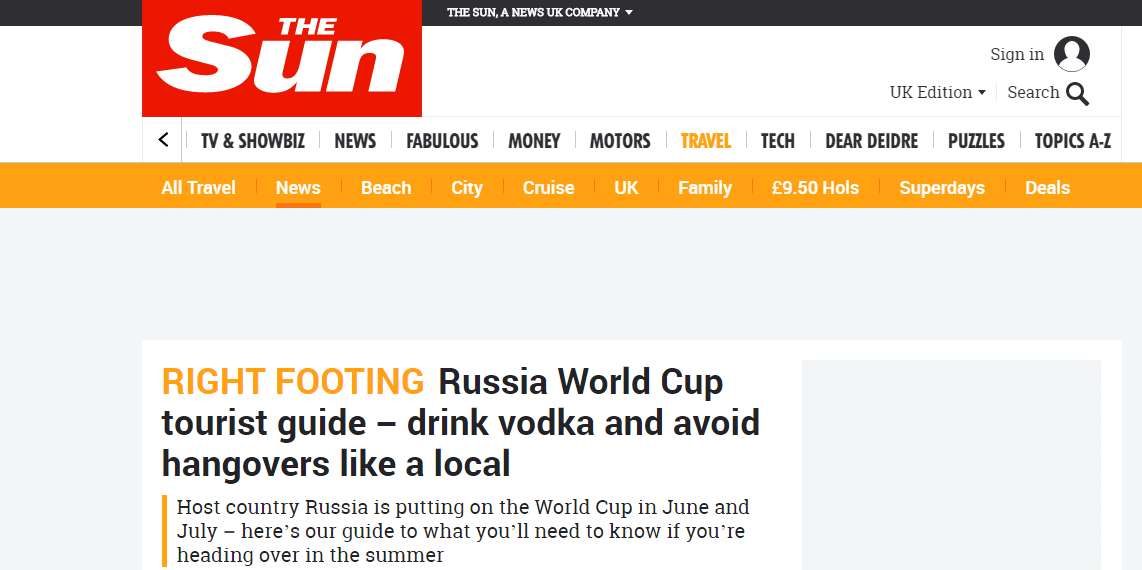 Пособие для британцев, которые планируют посетить Чемпионат мира по футболу в России, опубликовал таблоид The Sun. ALAMY/England are heading to the World Cup in Russia next year Fans will be heading to Russia to support England in the tournament ALAMY/Russian cabbage soup is a traditional lunch option Таблоид отмечает, что британцы «известны полным отсутствием самоконтроля, когда дело касается выпивки», а «русские известны своей любовью к водке», и это «убийственная комбинация», поэтому советует не злоупотреблять водкой. Живущий в России владелец турагентства Горан Пилипович, который помогал The Sun составлять инструкцию, советует обязательно заедать выпивку zakusi – маринованными огурцами, ветчиной и сыром. Отмечается, что важную роль играют тосты, поэтому пить до их произнесения считается «очень невежливым». Также британцам не советуют мешать водку с пивом, чтобы избежать тяжелого похмелья. Но и от него есть средство, пишут журналисты, – овощной суп borscht. «Возможно, он не выгля