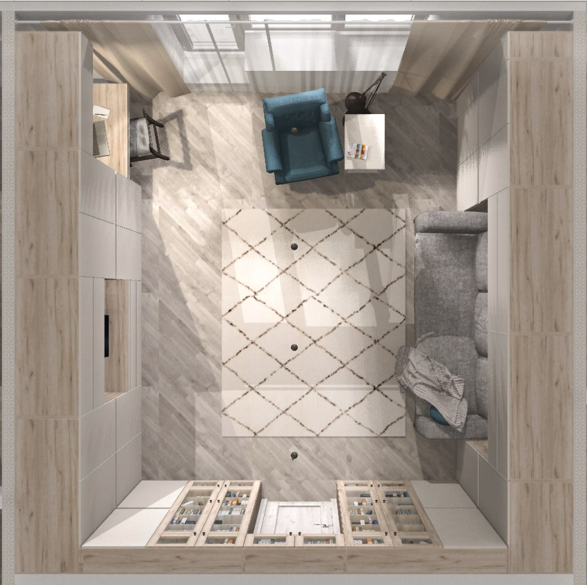 Если грубо прикинуть, то людей, которые готовы платить за услуги дизайнера интерьера можно разделить на две группы: "сделайте мне красиво" и "вместите мне то-то и то-то, и сделайте все это красиво". То есть, кто-то в приоритет ставит дизайн как дизайн, а кто-то потребности и функционал. Так как большинство наших заказчиков рядовые граждане, живущие в стандартных квартирах с небольшими площадями - то мы большую часть времени работаем по второй категории. Одна из наших работ, что все еще в процессе, это квартира трешка - две детские, гостиная/спальня родителей, кухня и, соответственно, прихожка. Дизайнировать мы будем только кухню, гостиную и прихожку. А описывать в этой статье вообще только гостиную, ибо все остальное совсем в работе и писать пока не о чем. Задача: вещей много, гардеробной нет, есть книги и их желательно разместить не по сундукам. Также, надо сделать рабочее место и отдельно оставить зону для чтения. Хозяева спят на раскладном диване. Грустно, но альтернативы нет - н