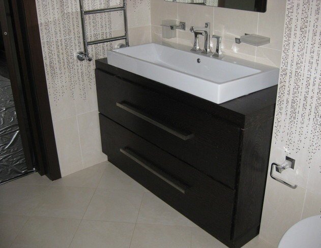 Устанавливаются на стену при помощи кронштейнов. Если ванная комната небольшая, этот вариант подойдет идеально. Подвесная тумба расширит границы помещения и поможет более рационально использовать пространство.