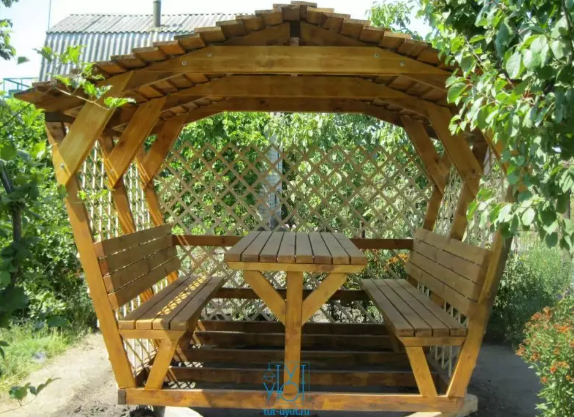 Совсем скоро на улице установится летняя жара. В этот период нет ничего лучше, чем попивать прохладительные напитки укрывшись под сенью уличной беседки. Если ваш садовый участок не может похвастаться таким сооружением это очень легко исправить. Лучшее решение – это беседка из дерева, которую вы без труда соорудите своими руками в течение нескольких дней по вполне бюджетному варианту.