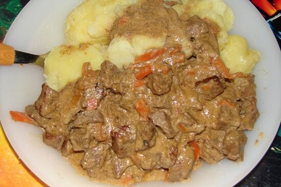 Рецепт приготовления обычного классического гуляша из печени. Получается сытно, вкусно и просто. Блюдо для разнообразия ежедневного рациона. Для приготовления потребуется: Печень(любая)-600-800 гр. Молоко-150-200 мл. Морковь-1-2 шт. Лук-1-2 шт. Мука-1 ст.л. Соль-по вкусу Перец и приправы по вкусу. Печень вымоем, уберем все пленки и протоки, разделим на части. Складываем в миску и заливаем молоком, оставляем на 30-60 минут, чтобы печень была мягче. Так делаем со свиной, говяжьей или бараньей печенью, куриную можно готовить без вымачивания в молоке, она более нежная. Также и свиную, говяжью печень можно ни всегда вымачивать. Это кому как нравится, по наличию продуктов и времени. Достаем из молока, промоем, дадим стечь воде, лучше положить в дуршлаг, так будет быстрее. Нарезаем на кусочки. В сковороду наливаем растительное масло для жарки и выкладываем печень. Вначале жарим на сильном огне, переворачиваем на разные стороны, примерно 7-10 минут, затем огонь убавляем и тушим на медленном о