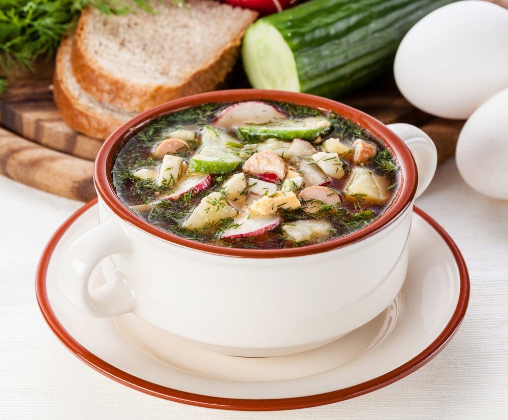 РЕЦЕПТ №1 "РЫБНАЯ ОКРОШКА" Мы привыкли что окрошка бывает мясная или овощная, но рыбная не менее вкусная. Ставлю ее на первое место, чтобы Вы обязательно попробовали Рыбу необходимо отварить в подсоленной воде. Далее делаем обычную нарезку, как на окрошку. Заливаем квасом, подаем со сметаной. Используйте несладкий окрошечный квас. – Для окрошки хорошо подойдут бескостные сладкие виды рыб: судак, горбуша, треска или форель. – Если вы хотите придать окрошке пикантный вкус, замените свежие огурцы на малосольные и добавьте хрен. РЕЦЕПТ №2 "ОКРОШКА ПО-СИБИРСКИ" -яйца – 5 штуки -150 г ветчины -черемша (по вкусу) -5 картофелин -зеленый лук (по вкусу) -2 свежих огурца -квас Подавайте окрошку с черным хлебом и сметаной. РЕЦЕПТ №3 "ОКРОШКА НА КЕФИРЕ" -3 яйца -сметана -5-6 редисок -300 г вареной колбасы -3-4 картофелины -кефир -немного столовой горчицы -3-4 огурца -укроп -зеленый лук -соль Измельченный зеленый лук растираем солью до тех пор, пока не выделится сок. 6. Теперь надо сделать за
