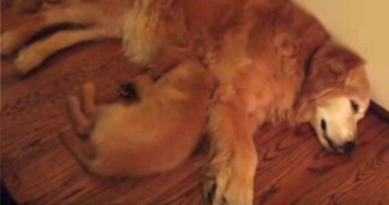 Судя по последним исследованиям ученых в области собачьего сна, собаки как и люди могут видеть сны. Теперь, когда у всех хозяев есть мобильные телефоны с камерой, каждый может заснять на видео этот процесс в качестве доказательства. Самое парадоксальное, то, что процессы в мозге отвечающие за сновидения очень похожи на человеческие. Помимо хороших и добрых снов, люди и собаки могут снить и плохие сны, от которых кровь застывает в жилах и хочется кричать и бежать. Такие сны принято называть кошмарами. Кошмары могут сильно напугать вашу собаку, что после них она может вести себя неадекватно и даже агрессивно. Обычно, если другой человек видит, что кто-то снит кошмар, то первое, что надо сделать - это медленно и спокойно разбудить его не напугав. Но что происходит, если одна собака видит, что вторая снит плохой сон? Такой момент запечатлел на свою камеру хозяин золотистого ретривера и ее щенка. Щенок лежал рядом со своей мамой, когда увидел, что с ней что-то не то. Он немного напу
