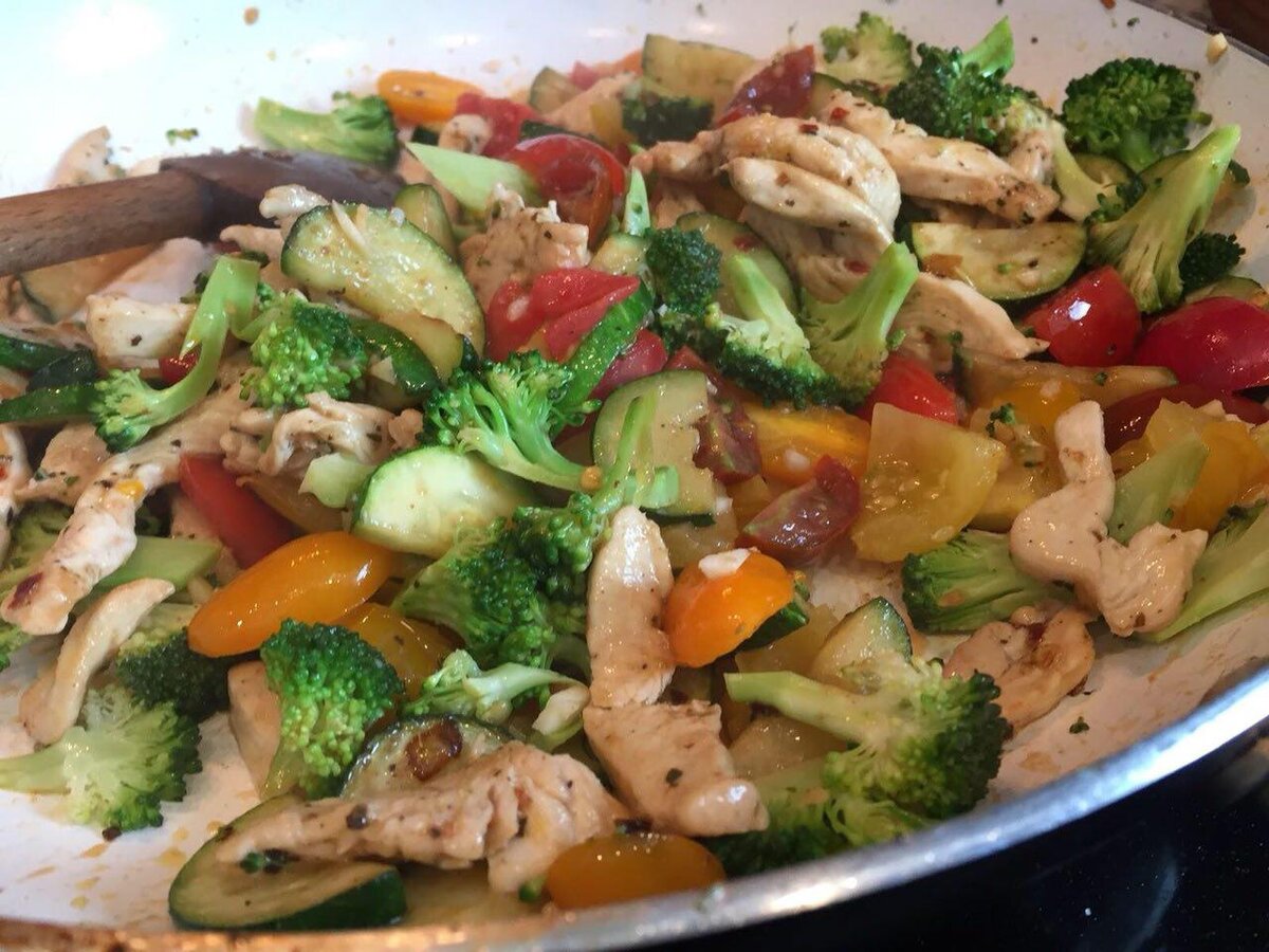 🔸на 100 грамм - 206.76 ккал🔸Бел. - 6.87/ Жиры - 2/ Угл. - 40.21🔸 Ингредиенты: - куриное филе - 1 лук - 2 дольки чеснока - 1 вилок брокколи - 1 перец сладкий - 1 морковь - 1/2банки кукурузы консервированной - 3 ст.л. соевого соуса - приправы Приготовление: 1. Куриное филе режем кубиками и маринуем в приправе для курицы и сушеном гранулированном чесноке. 2. Лук с чесноком мелко режем и обжариваем на сковороде, чуть-чуть смазанной маслом. 3. Добавить кусочки курицы. А когда она побелеет, добавить морковь, нарезанную кружочками и перец, нарезанный кубиками. Все тушить 7 - 8 минут. Затем добавить брокколи, разобранную на соцветия. Тушим еще 10 минут. 4. Добавляем кукурузу, перемешиваем и добавляем соус соевый, еще раз хорошо мешаем и тушим минут 5. Приятного аппетита! Если рецепты у вас голове, то рекомендую вам канал "САМИ - РУКАМИ" - там вы найдёте кучу интересного и полезного для нашей жизни.