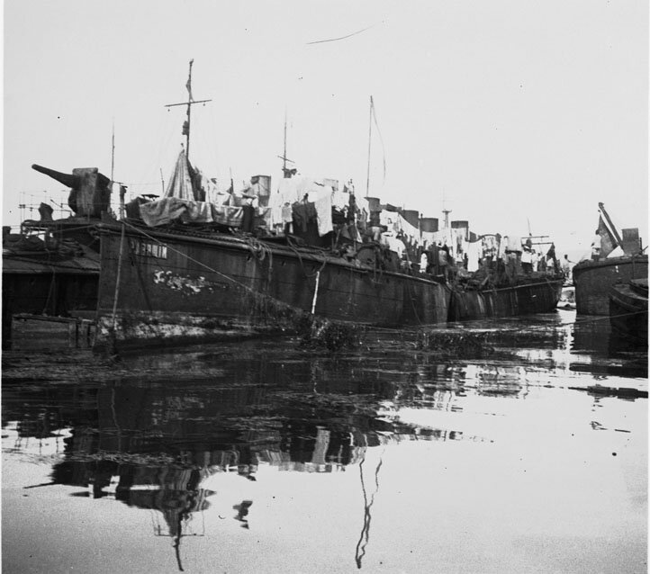 240-тонный миноносец "Разящий" типа "Сокол" в августе 1904 года , после подрыва на японской мине. Корпус миноносца переломился и в строй более не вводился , подорван торпедой для предотвращения захвата японцами в конце обороны.
