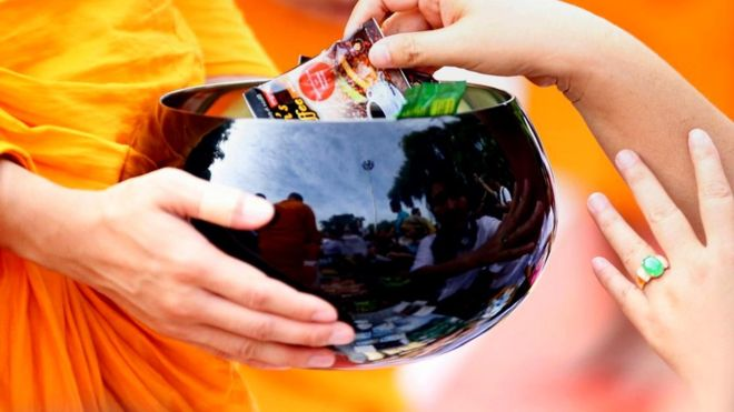 Хнинзи Тхет сказала, что еду и деньги жертвуют почти исключительно монахам и монастырям.