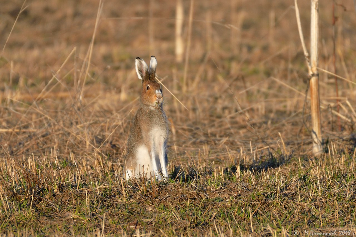 Если бы он знал, как выдавали его постоянно направленные вверх уши-локаторы с непролинявшим ярко-белым контуром) Впрочем, заяц особо и не заморачивался проблемой своей безопасности. По крайней мере, при моем приближении он только лениво отбежал на десяток метров, и продолжил мирно щипать побеги, вращая ушами) Мне нужно было срочно отлучиться.