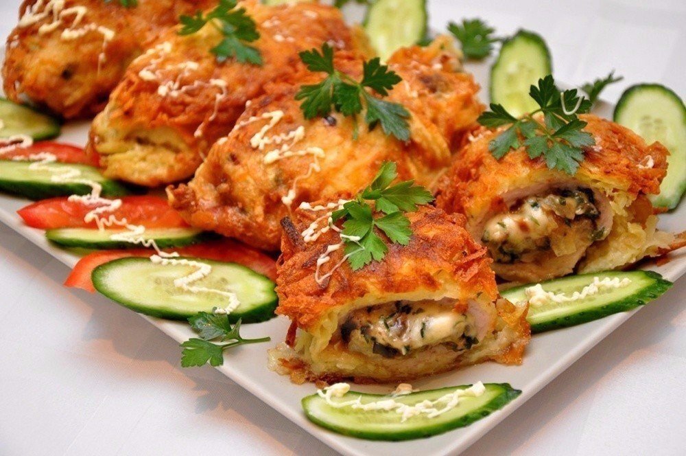 Раскладываем поверх них натертый картофель, который аккуратно прижимаем к котлете руками со всех сторон. Получаются котлетки в картофельной шубке. Кладем в предварительно разогретую и смазанную растительным маслом сковороду, Обжариваем со всех сторон до золотистой корочки. Как только картофельная шубка зарумянится, перекладываем котлеты на блюдо и доводим до готовности в микроволновой печи за 5-10 минут в зависимости от характеристик вашей п