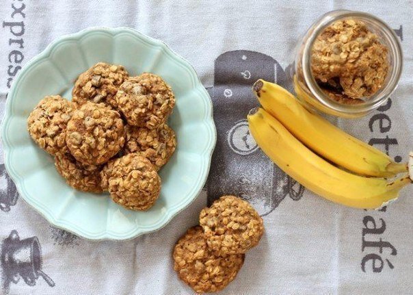 орехи, изюм, цукаты, корица (по вкусу). Способ приготовления: 1. Очисти бананы, положи в миску и хорошо разомни вилкой. Добавь туда же овсяные хлопья, а также по желанию орехи, изюм, цукаты, корицу и еще раз тщательно помни.