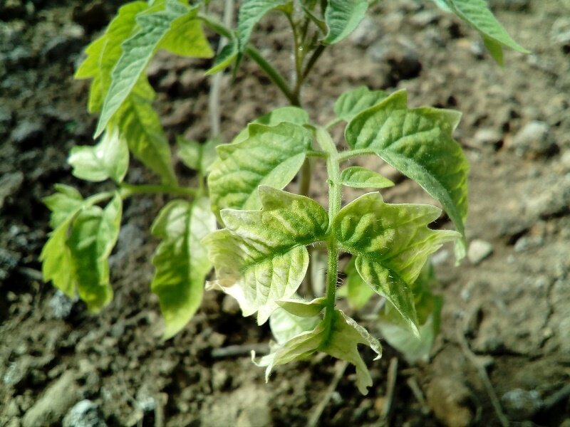 Данная проблема часто возникает у садоводов новичков пробующих впервые самостоятельно выращивать на своих участках томаты, или у тех, кто ранее покупал уже готовую рассаду, а сейчас решил её вырастить сам. Как правило, рассаду помидор начинают выращивать еще в феврале, когда световой день очень короток и практически отсутствуют солнечные дни, да и не у всех окна находятся на солнечной стороне, поэтому рассада постоянно находится на искусственном освещении. Причиной побеления листьев рассады является солнечный ожог (от него не спасает даже поликарбонат с защитным слоем от ультрафиолетовых лучей) и чтобы не увидеть после высадки рассады такую картину, необходимо: За несколько дней до предполагаемой высадки в грунт в течении нескольких дней не надолго выставлять рассаду на солнце. Начинают с 30 - 50 мин в первый день, дальше каждый день увеличивать время на час, будет достаточно 4 – 5 дней для подготовки рассады к высадке.