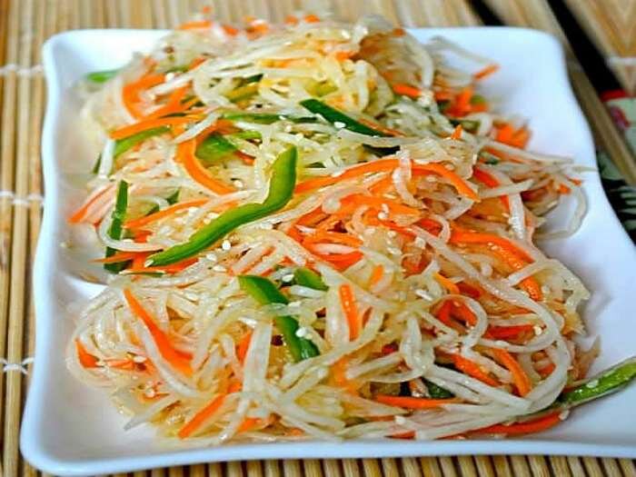 Это салат в меру острый, он отлично дополнит любое блюдо из мяса или птицы. Готовится очень легко и быстро, из доступных ингредиентов! Для приготовления салата вам понадобится терка для корейской моркови. Вкусный и лёгкий салатик! Итак, нам понадобится : 1.Редька 400-450 г 2.Морковь 200 г 3.Перец сладкий свежий или замороженный 150 г 4.Лук белый или красный ½ шт. Для заправки : 1.Растительное масло 4 ст.л. 2.Уксус 9% 1 ст.л. 3. Черный молотый перец 1/3 ч.л. 4.Чеснок 2-3 зубка 5.Молотый кориандр ½ ч.л. 6.Соль ½ ч.л. 7.Красный острый перец 1/3 ч.л. Натереть редьку и морковь на терке, нарезать тонкой соломкой лук, сложить в глубокую миску. Перец свежий очистить от семян и нарезать соломкой или мелко. Заправить салат растительным маслом, уксусом, измельченным чесноком, посолить и добавить красный и черный перец, кориандр. Заправку смешать в отдельной тарелке и влить эту смесь в овощи. Всё хорошенько перемешать! Можно посыпать сверху кунжутом! Приятного аппетита!