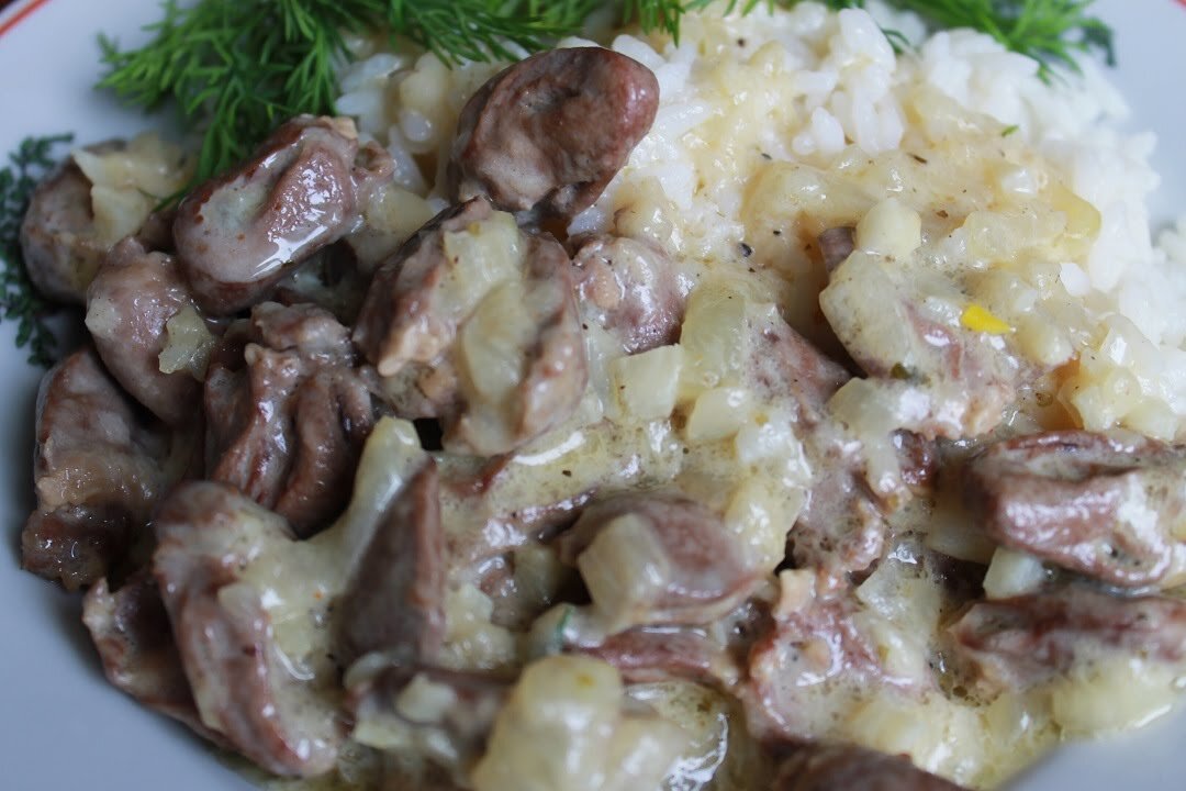 Это блюдо выходит по-настоящему нежное, сочное и ароматное. В принципе подходит к любому гарниру, в нашем рецепте — рис. Готовятся эти сердечки очень легко. Главное — правиль выдержать время тушения для того, чтобы мясо было нежным, а соус — насыщенным.