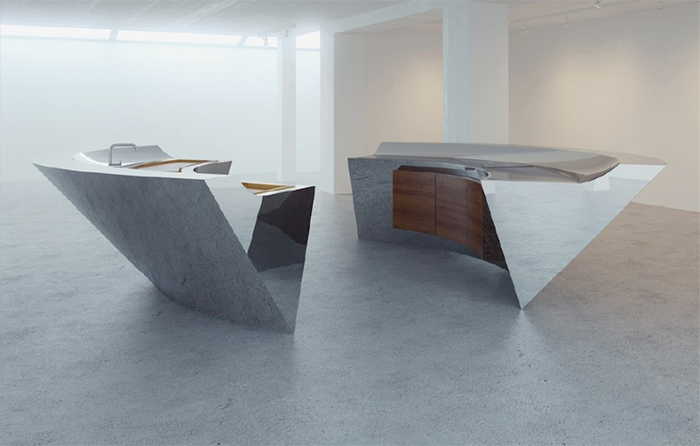 Мойка на кухне – скульптурная мебель; Дизайнеры – Мил Хартвелл, Мэт Вашингтон; стиль – «Модерн»; особенность – сочетание строгости, минимализма и эргономичности; расположение – Лондон.