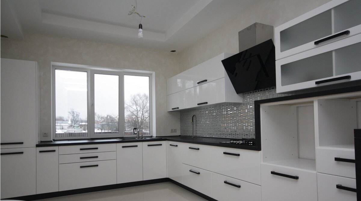 Достаточно изменить кухонную фурнитуру: сделать черные ручки или подобрать в тон к ним осветительные приборы, которые прекрасно впишутся в интерьер любого стиля.