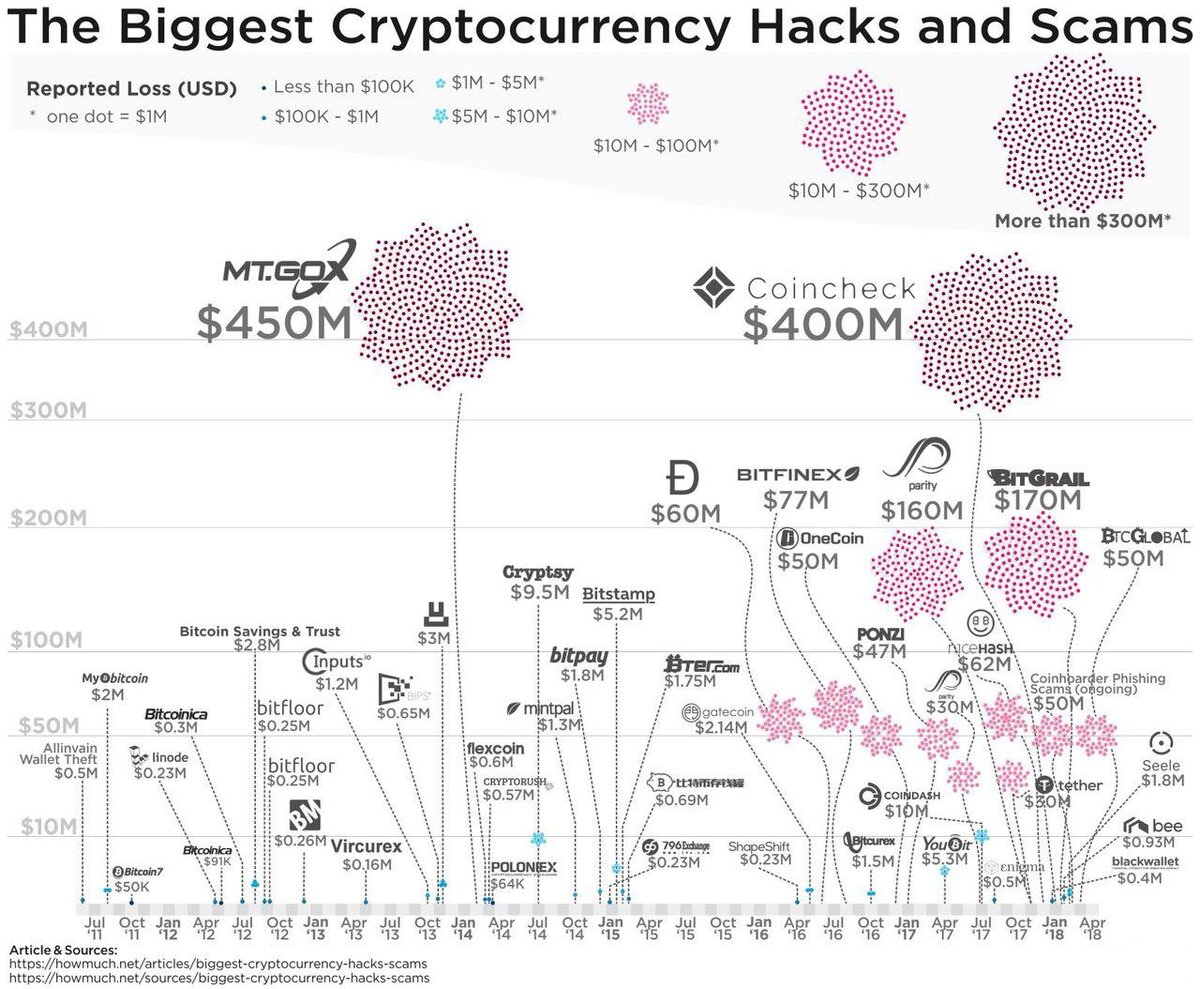 Хаки - в основном связаны с недостаточным обеспечением безопасности пользователями (отсюда появились рекомендации хранить логи и пароли на технике, не связанной с интернетом), биржевыми взломами и элементарными взломами сайтов-лендингов ICO.