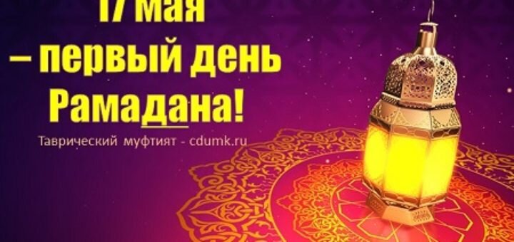 Дорогие мусульмане! Сегодня — во вторник, 15 мая 2018 года (29 число месяца Ша’бан 1439 года по hиджре), по предписанию Шари’ата ЦДУМ — Таврический Муфтият провел наблюдение за появлением новолуния месяца Рамадан 1439 года по hиджре. Спешим сообщить вам, что новолуние месяца Рамадан 1439 года по hиджре не было зафиксировано, и поэтому среда, 16 мая 2018 года, является 30 днем месяца Ша’бан, а четверг, 17 мая, будет первым днем благословенного месяца Рамадан 1439 года по hиджре.