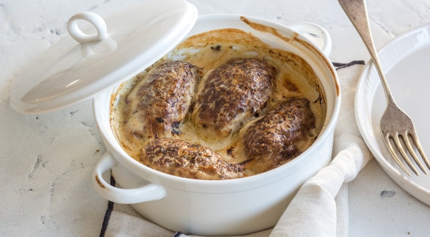 Немного непонятно, откуда взялось упоминание британского полководца Нельсона в рецепте... Но известно, что блюдо это вкусное и утонченное. А в сочетании со сливочной подливой на грибном бульоне ммммм...хорошо и для будней, и для выходных :) На 5-6 порций нам потребуется: Для зразов: Для подливы: Готовим мясо как на котлеты, только еще добавляем яйца. Берем сушеные грибы, заливаем водой и кипятим, пока грибы не сварятся, а бульон не будет темный. Берем луковицу, мелко рубим и пропариваем в масле на сковороде. Грибы мелко порубить и добавить туда же. В небольшом сотейнике отвариваем сало или ветчину в небольшом количестве воды (водой надо только покрыть) до мягкости и мелко порубить, добавить к грибам. Жидкость сливаем. Обжариваем смесь еще 1 мин. Всыпать растолченные пшеничные сухарики. Все быстро пропарить, добавив 1-2 ст. л. грибного отвара. Перемешать и остудить. Сделать зразы с этим фаршем, обвалять в муке и жарить на горячей сковороде с двух сторон с сливочном масле до готовн