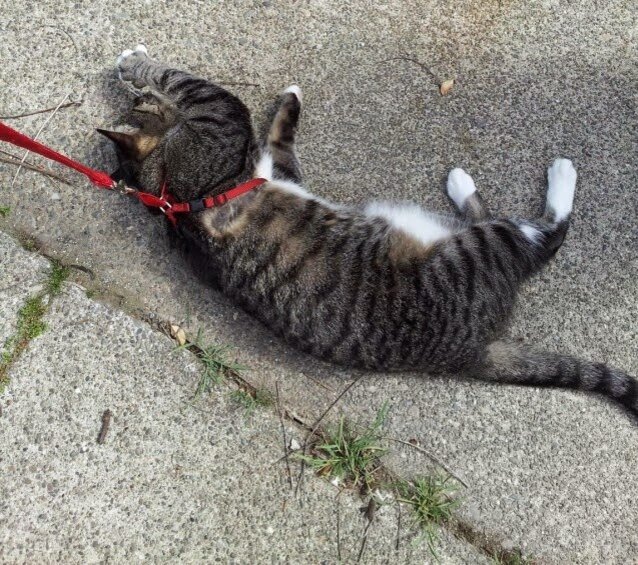 Но я в какой-то момент решила, что негоже такому красавцу всю жизнь взаперти сидеть, нужно и воздухом подышать. (на самом деле, мне просто стало скучно, и я подумала, что прекрасно можно погулять с котиком). Воздухом дышать я повела его на поводке. Нет, никакой там шлейки или чего подобного. Обычный кожаный папин ремень призван был играть роль ошейника, к нему привязала шнурок от ботинка – и прогулочный поводок готов. Чем я думала? Чем думала моя мама, когда видела всю эту подготовку? Я не думала ничем, могу вас заверить. Хотя в математике я соображала неплохо, но в остальном мозг у меня был как у бабочки, чесслово. Мне просто хотелось покрасоваться с котиком. Жаль, что котик не хотел покрасоваться со мной. Он вообще не одобрил всю эту затею еще в самом начале. При виде ошейника у него, видимо, сработал инстинкт самосохранения, и Мурзик запихался глубоко под кресло. Но так как жили мы с ним вместе уже пару лет, практика доставания кота у меня уже была, и я справилась. Справилась даже с надеванием ошейника. И даже! Вышла с котиком на улицу. Свежий воздух Мурзиньке не понравился. Он упился выходить из квартиры. Он упирался спускаться по лестнице. Он дико упирался выходить из подъезда. Но вы даже не представляете, какими упрямыми могут быть девятилетние девочки, если им хочется выпендриться с котиком! Сначала кот нехотя тащился за мной. Потом я галопом неслась за котиком, потому что масса у него была ого-го (а вы гуляли с овчаркой, которая вдруг увидела кошку и ринулась за ней? Ну вот примерно вы представляете, как мне пришлось бежать за огромным котом, который бежал не за кошкой вовсе. А просто так. Сломя голову). В общем, идиллической картинки из моего воображения не вышло. Мурзик не хотел изображать удовольствие, и в один из моментов ему в голову пришла гениальная в своей простоте мысль. Он упал. Вот просто так – упал на бок. И отказался двигаться дальше. Что делать??? От дома я успела его оттащить метров на триста. Взять на руки и нести, как обычного кота? Исключено – при попытке взять его он начинал царапаться как проклятый. Пришлось тащить его на этом ошейнике. Ужас. Ну я и потащила.