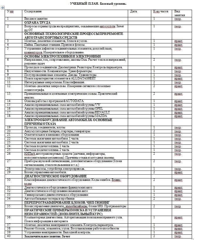 Это лишь ориентировочный план. Содержание занятий постоянно меняется в соответствии с изменением матчасти. Кроме этого, слушатели обычно заказывают определенную специализацию автоэлектрика: