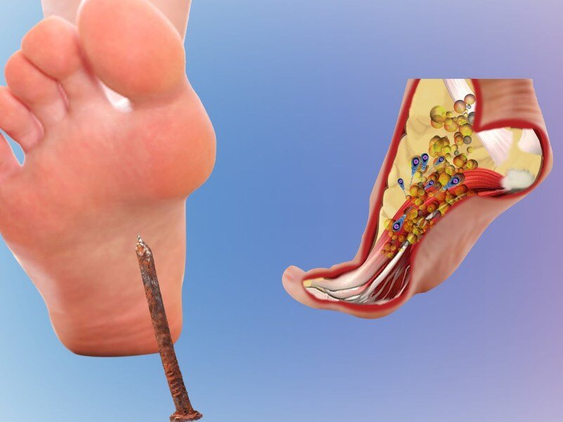 Столбняк - смертоносная инфекция. Она может попасть в ранку вместе с грязью, землей, иногда с водой. От нее трудно спасти человека, у которого в результате падения, порезов, укусов животных, обширных ожогов, отморожений, внебольничных абортов и прочих причин (сюда же относятся и ржавые гвозди, колючки) возникают грубые, обширные и глубокие повреждения кожи и слизистых. Уберечь от столбняка в этой ситуации может только своевременная прививка. К сожалению, иммунитет после нее непродолжительный, поэтому его надо регулярно поддерживать очередными прививками всю жизнь! Первую трехкратную прививку против столбняка делают с трехмесячного возраста через каждые полтора месяца. Она называется АКДС - адсорбированная коклюшно-дифтерийно-столбнячная. Ее однократно повторяют через год-полтора. Затем в 6-7 лет ребенок получает прививку только от дифтерии (иммунитет на нее тоже временный) и столбняка. Это АДСМ - адсорбированная дифтерийно-столбнячная вакцина малых доз. В 11-12 лет делается прививка