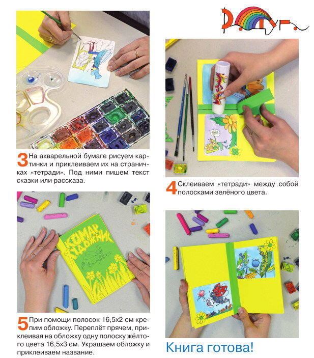 Софья ТЫРОН Сегодня почти любую книгу можно купить в магазине. Эти произведения написаны известными авторами и обычно печатаются на больших станках в типографии. Но знаешь ли ты, что книгу можно создать самому? И о чем она будет рассказывать, решать только тебе! Изготовить единственный и неповторимый экземпляр твоей собственной книги поможет Светлана Прокушева – директор школы творчества FoxKitty и талантливая рукодельница. НАМ ПОНАДОБЯТСЯ: листы двустороннего цветного картона, белая бумага, акварельная бумага, ножницы, простой карандаш, ластик, акварельные краски (или карандаши и фломастеры) и кисточки. 1