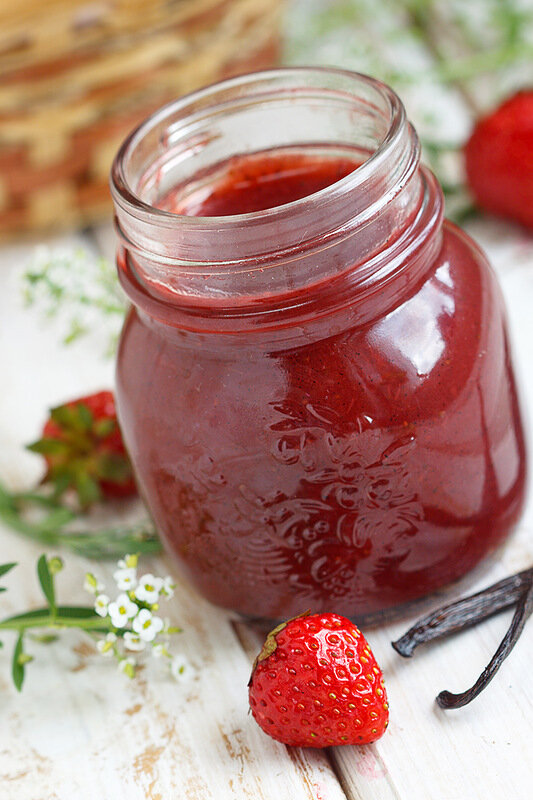 Представляем вашему вниманию рецепт нежного и вкусного клубничного конфитюра.Этот вид заготовки достаточно деликатный. Его варят без сиропа, прямо с сахаром, без воды. Сохраняется яркость и не разрушается пектин ягод. Клубничный конфитюр отлично подходит для пропитки коржей, начинки для корзинок или другой пирожной мелочи. Безумно вкусен даже просто так — ложечкой к чаю. Он напоминает жидкий мармелад. Отлично смотрится и как украшение любой выпечки. Нужные ингредиенты Начинаем процесс