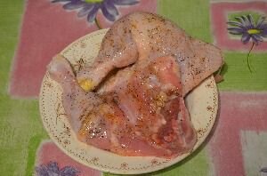 - В процессе приготовления окорочка и картофель нужно периодически поливать выделившимся жиром, благодаря этому они не будут сухими. Ингредиенты для приготовления окорочков с картофелем: Рецепт приготовления окорочков запеченных с картошкой в духовке: 1. Окорока промыть и просушить бумажным полотенцем или салфетками. Натереть солью, посыпать черным